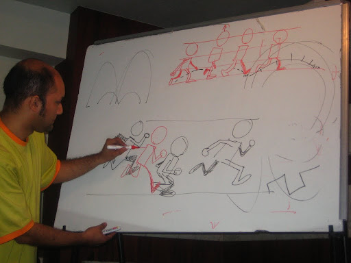 This one image says it all.....the basic fundamentals of traditional classic animation.... Any animator would be lame without knowing this.... The traditional Walk cycle and Run cycle... and the best part - no one can match up to the precise accuracy of the poses that Vaibhav Sir draws... that too like in 2 secs... Hes like a live book... dont need anything further than that... :)